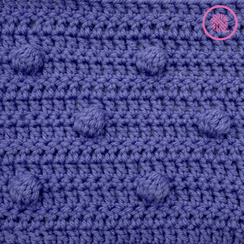 The More Bobbles stitch pattern has a field of bobbles close together. The rows are offset creating a honeycomb of bobbles.