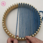 For this project, I’m using 3 strands held together as I weave. Depending on the loom and yarn you choose you may need 2 or 3 strands of yarn to get a tight enough weave. Keep in mind the larger the loom gauge the more space you will have in your weave. If you think your weave is too loose, switch to a smaller gauge loom or add an additional strand of yarn.