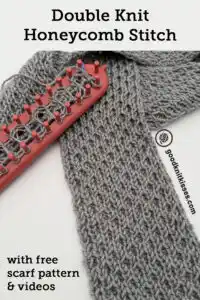 Inside: How to loom knit the double knit Honeycomb Stitch. Includes free scarf pattern with written instructions and tutorial videos for left and right handers.