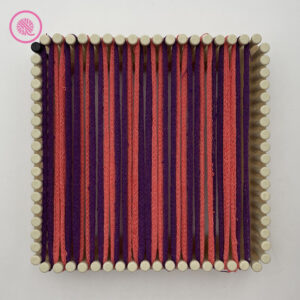 The Radiating Boxes Potholder creates a fun design with four mitered squares each pointing to its own corner. The back of the design forms a ➕ in the center surrounded by squares pointing inward. This easy loom weaving pattern uses only 17 pegs so it’s a fast project.