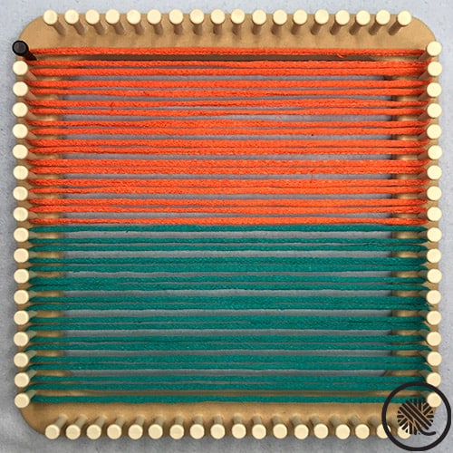 - Continue placing all the warp loops according the to the color pattern shown in the picture.